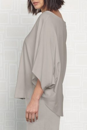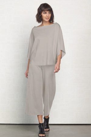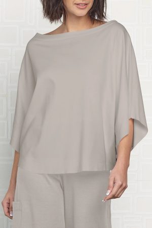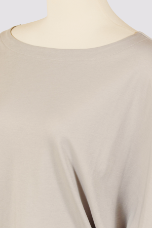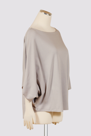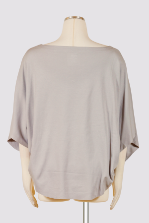 The Bateau Tee by PLANETÂ by Lauren G, boasts a boatneck and dolman sleeves for a relaxed yet chic cocoon silhouette. Its raw edges add a touch of unique charm. Falling at the hip with a narrower shape and longer hem in the back, this tee is perfect for a carefree and effortless style. No pockets for a sleek finish.
