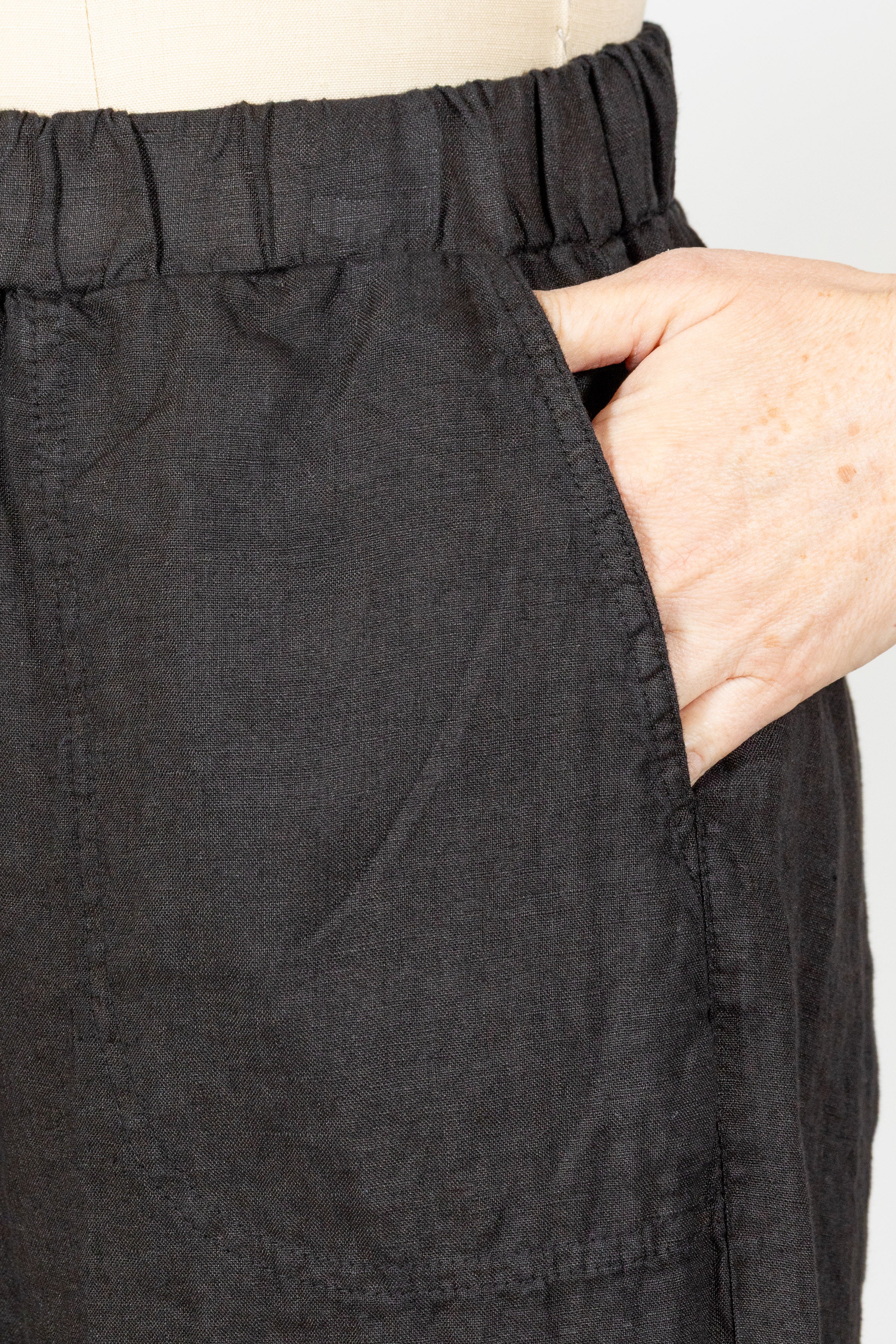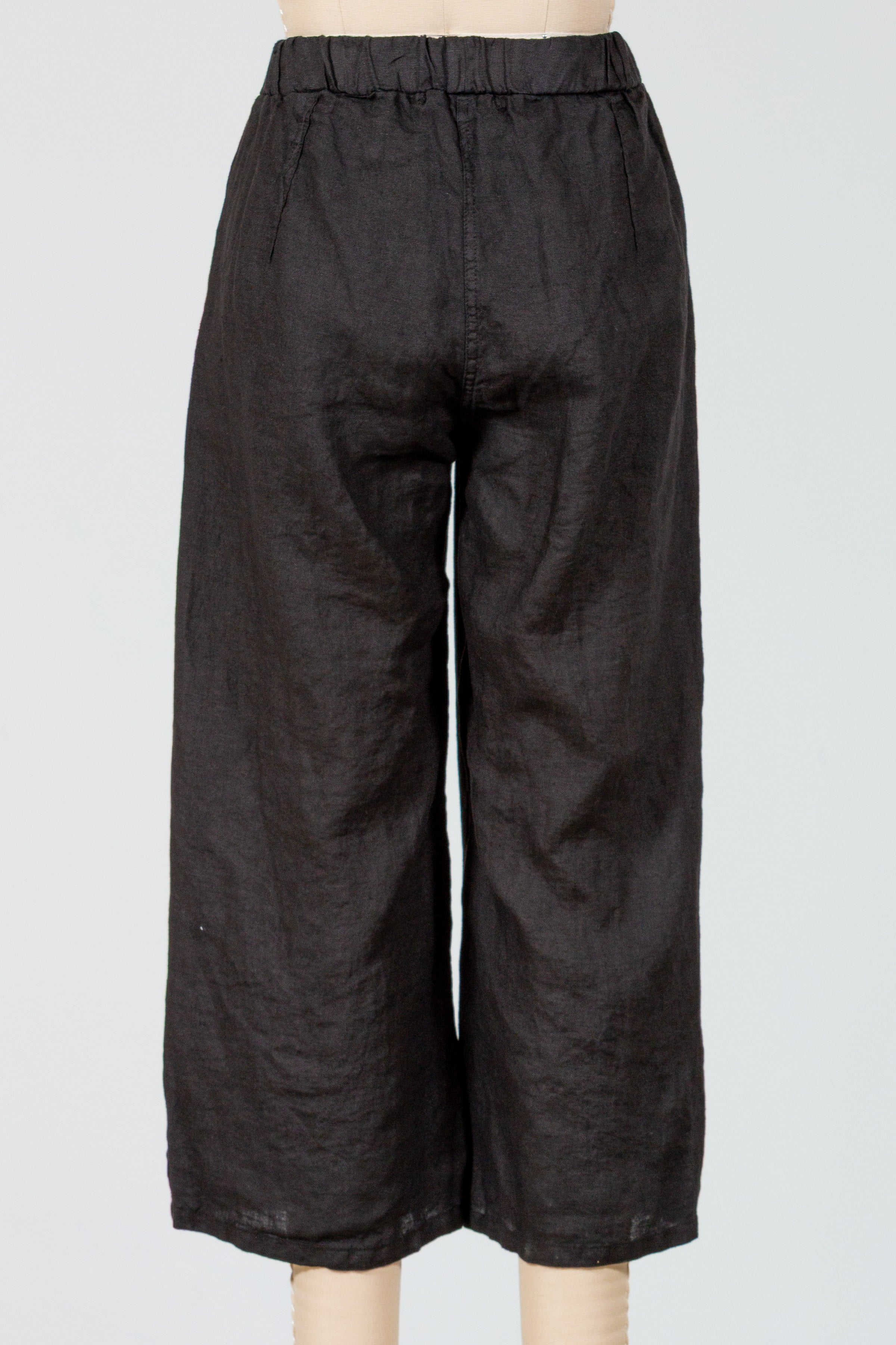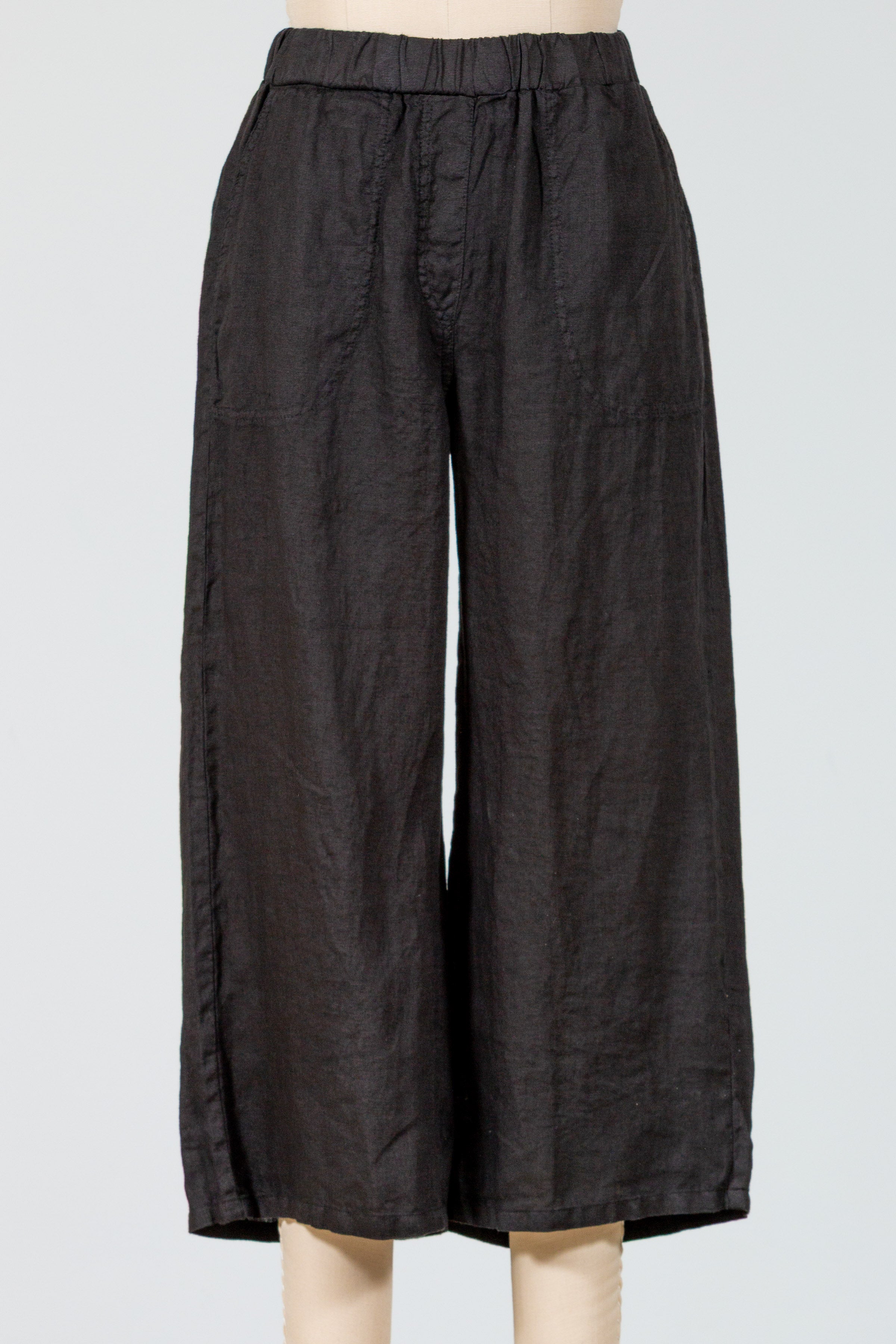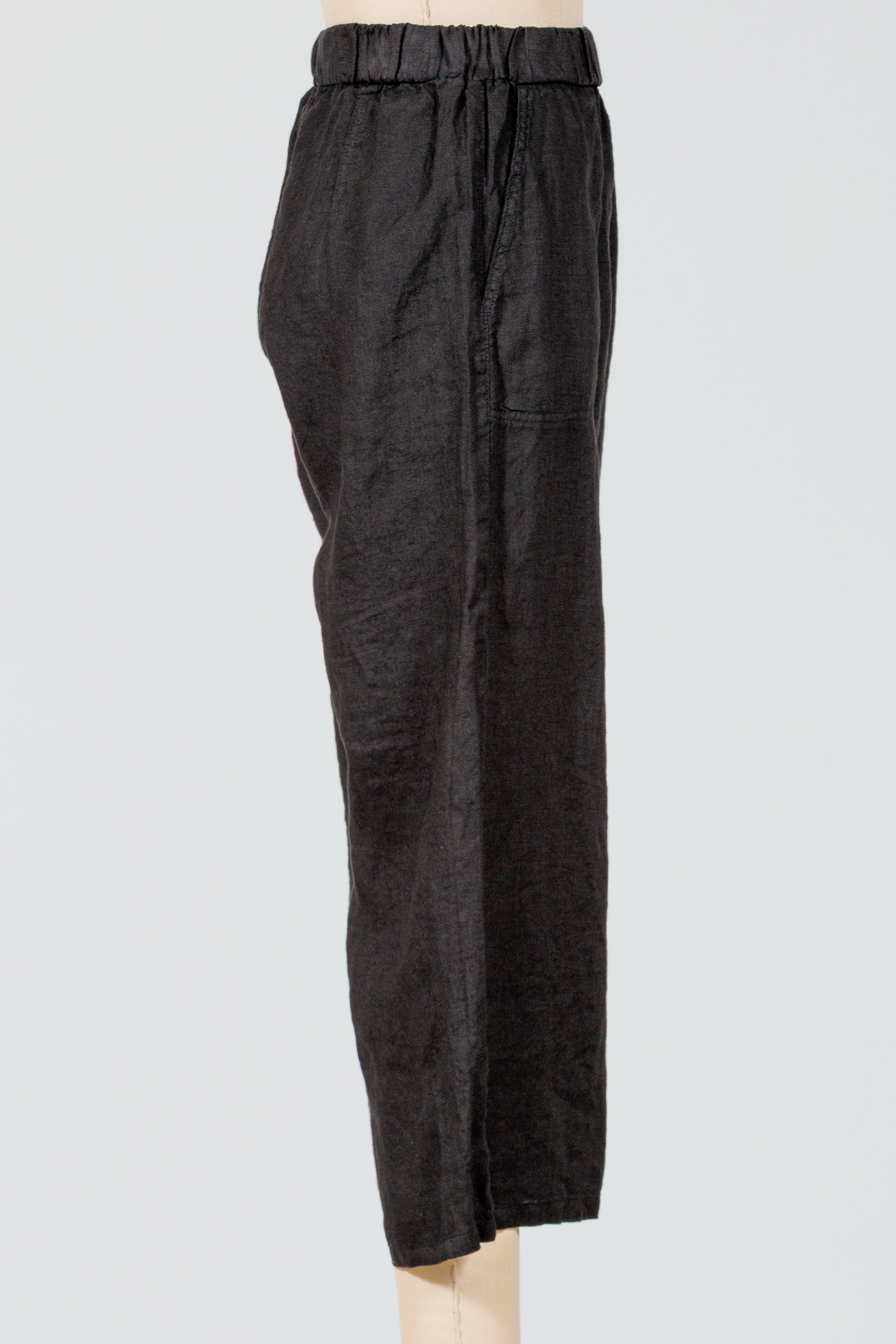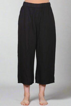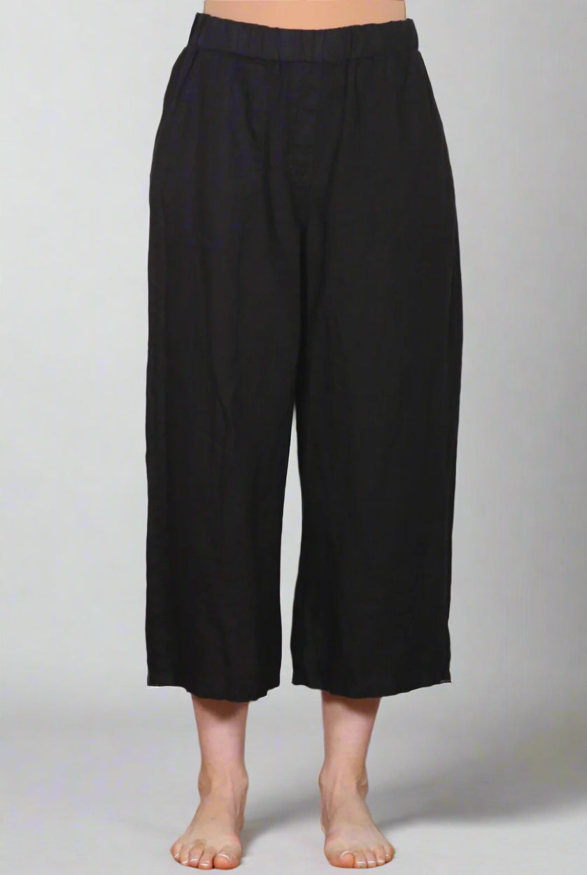 Cut Loose’s Easy Crop Pant – a must-have for every wardrobe! Made from lightweight hanky linen, these relaxed-fit, wide-leg pants offer effortless style and comfort. Featuring a wide elastic waistband, top-stitched faux-fly, and front pockets for a sporty touch. Perfectly cropped at mid-calf, these pants are a versatile piece that will elevate your look.