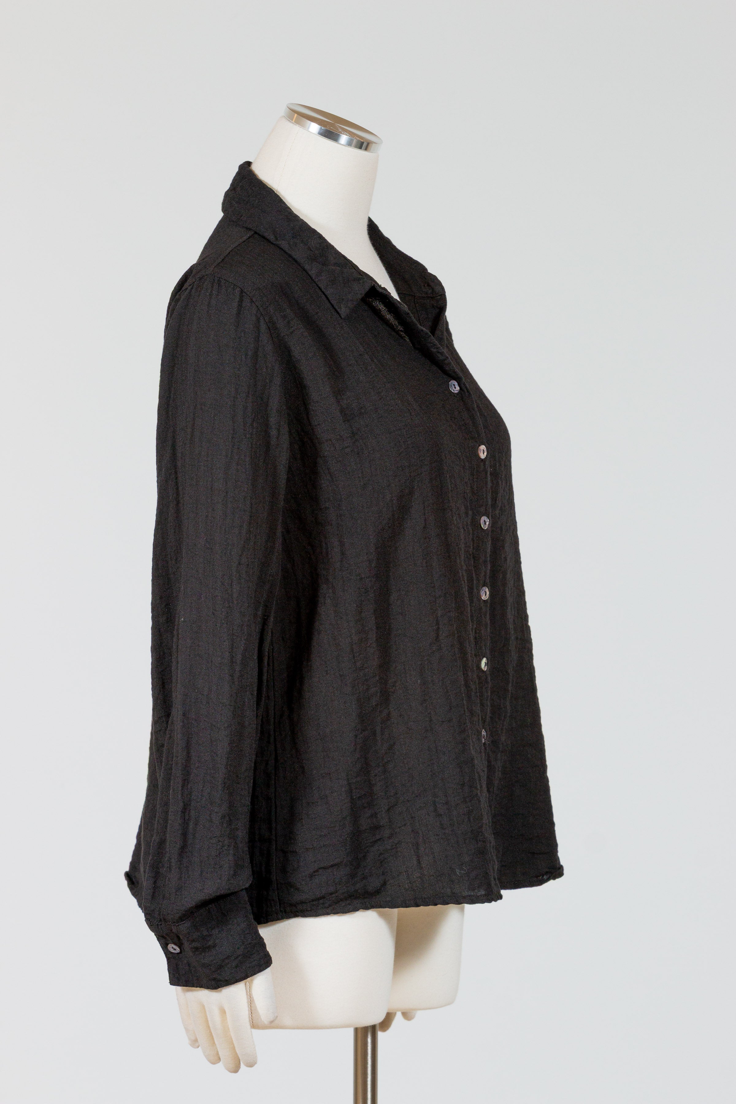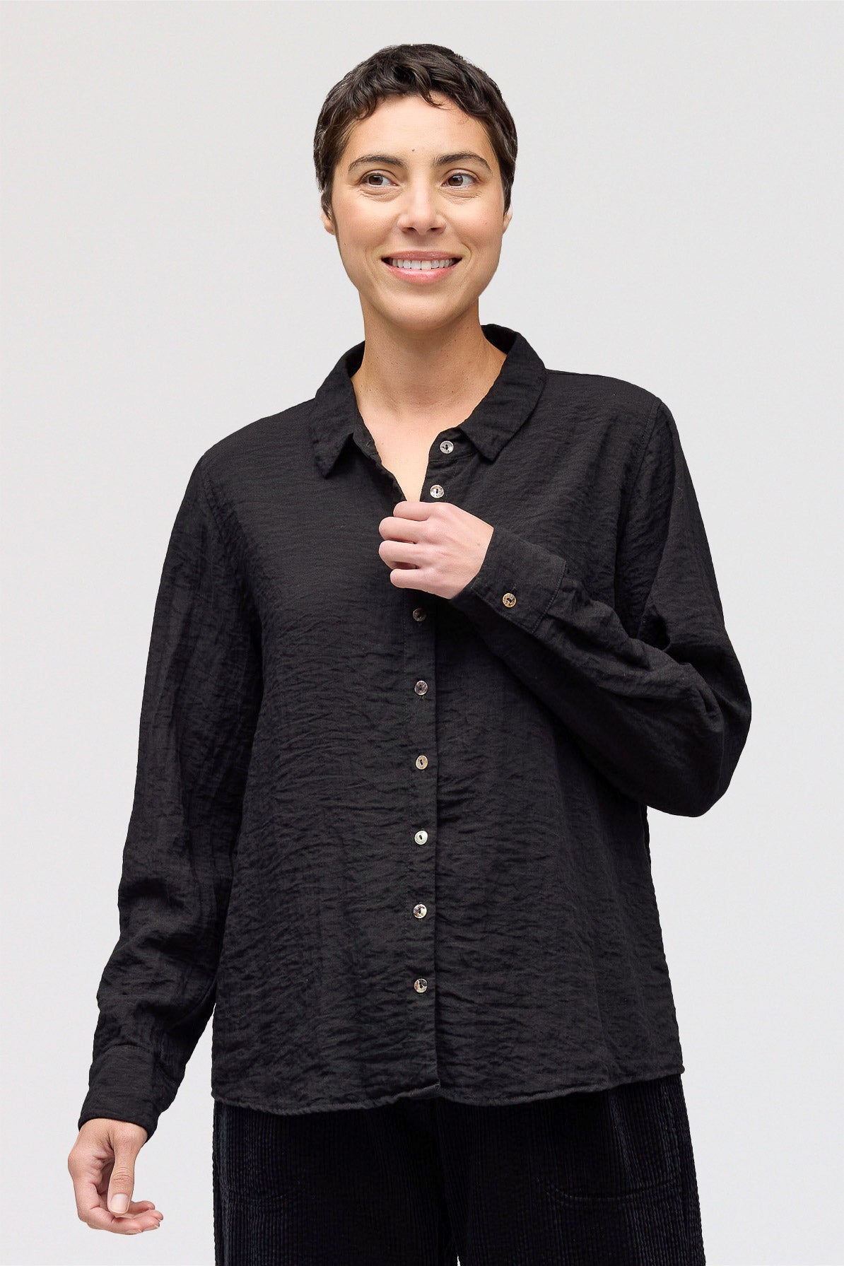 Cut Loose’s Fitted Shirt is a travel-friendly essential with timeless style, the Cut Loose Fitted Shirt is crafted from lightweight parachute fabric with a signature crinkled texture that resists wrinkles and adds just the right amount of character. This button-down blouse features a flattering straight fit with a graceful drape, making it easy to wear anywhere, anytime. Long sleeves with button cuffs add polish, while the no-pocket design keeps the look clean and streamlined. Effortless, versatile, and perfect for layering through the seasons.Â