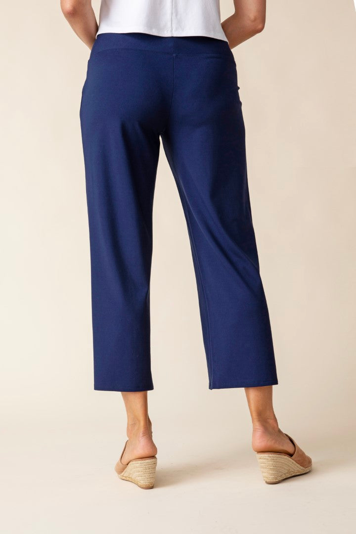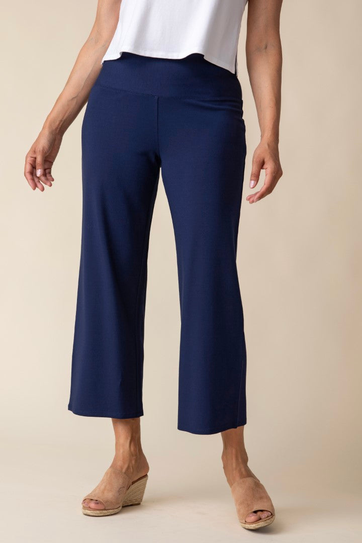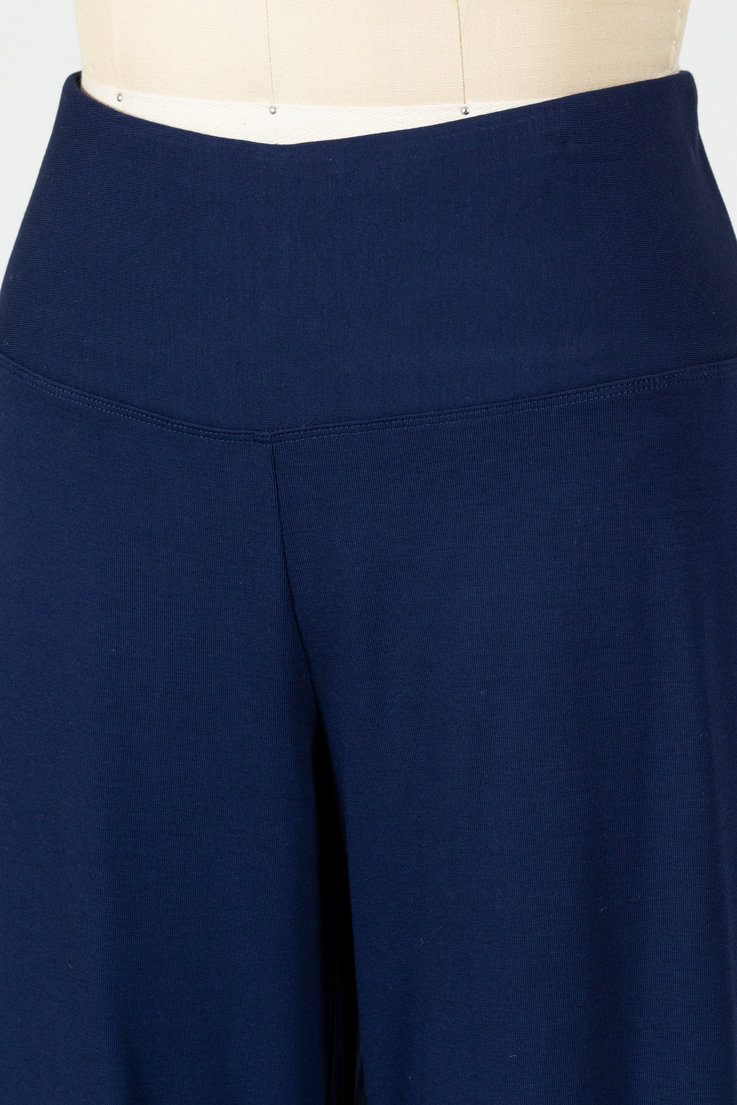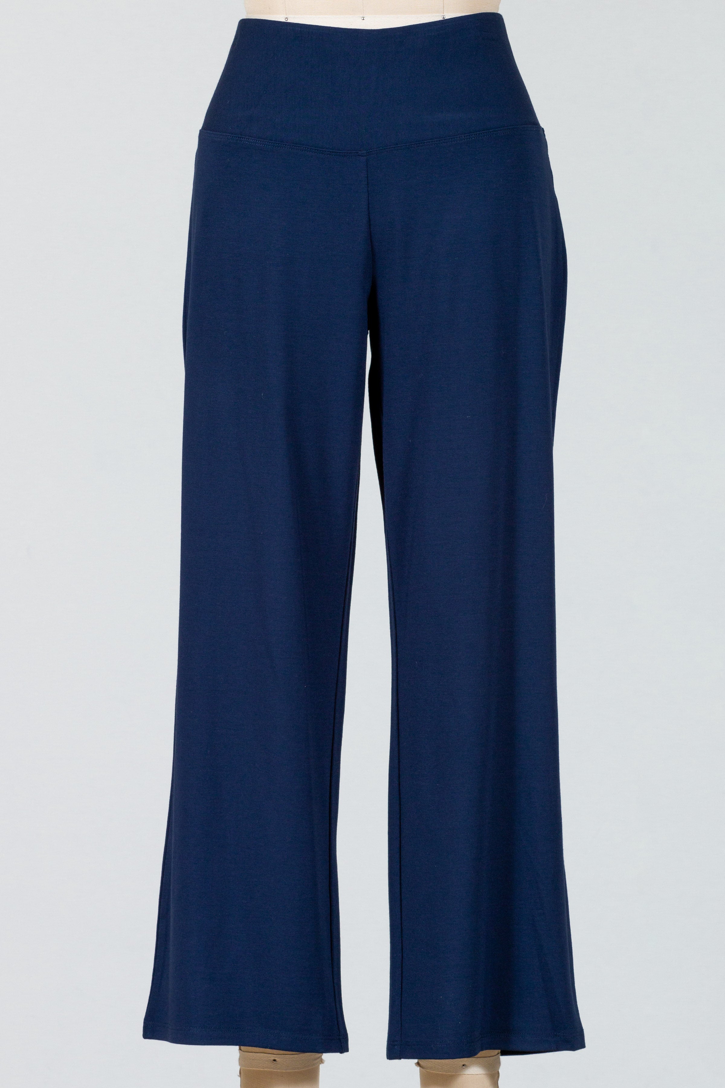 Habitat Flood Pant is a pull-on stretchy pant with an elastic waistband. Wide banded drop waist, these Flood Pants have a wide leg and fall about mid-shin in length. A basic everyday comfy pant to live-in. No pockets.Â