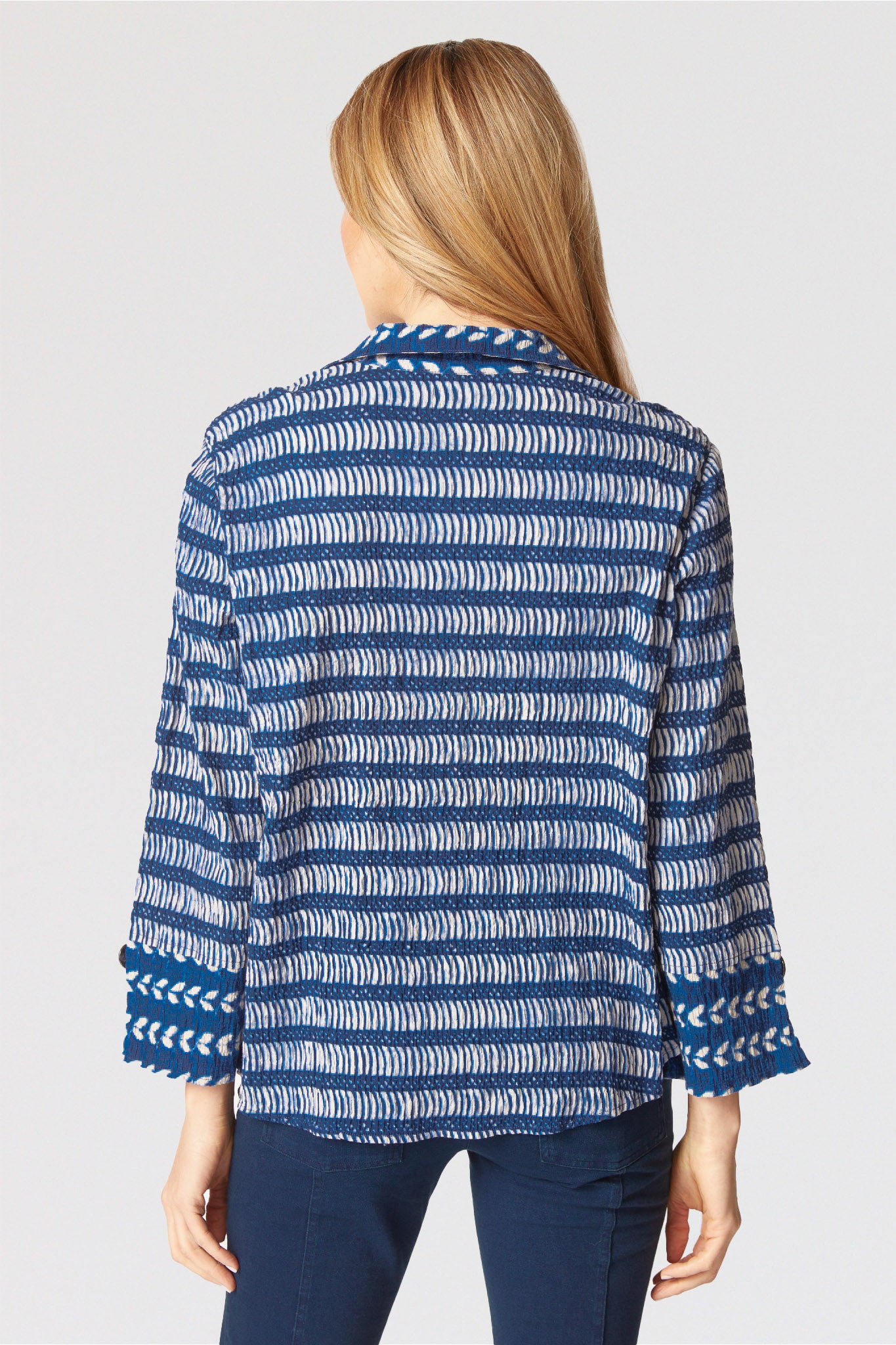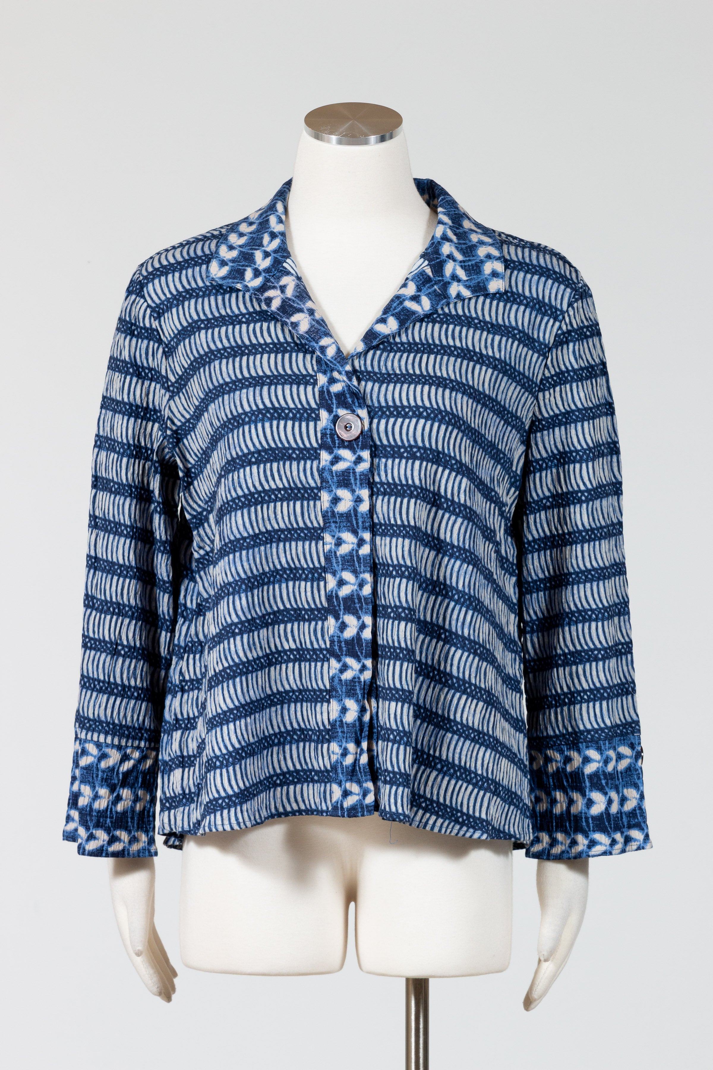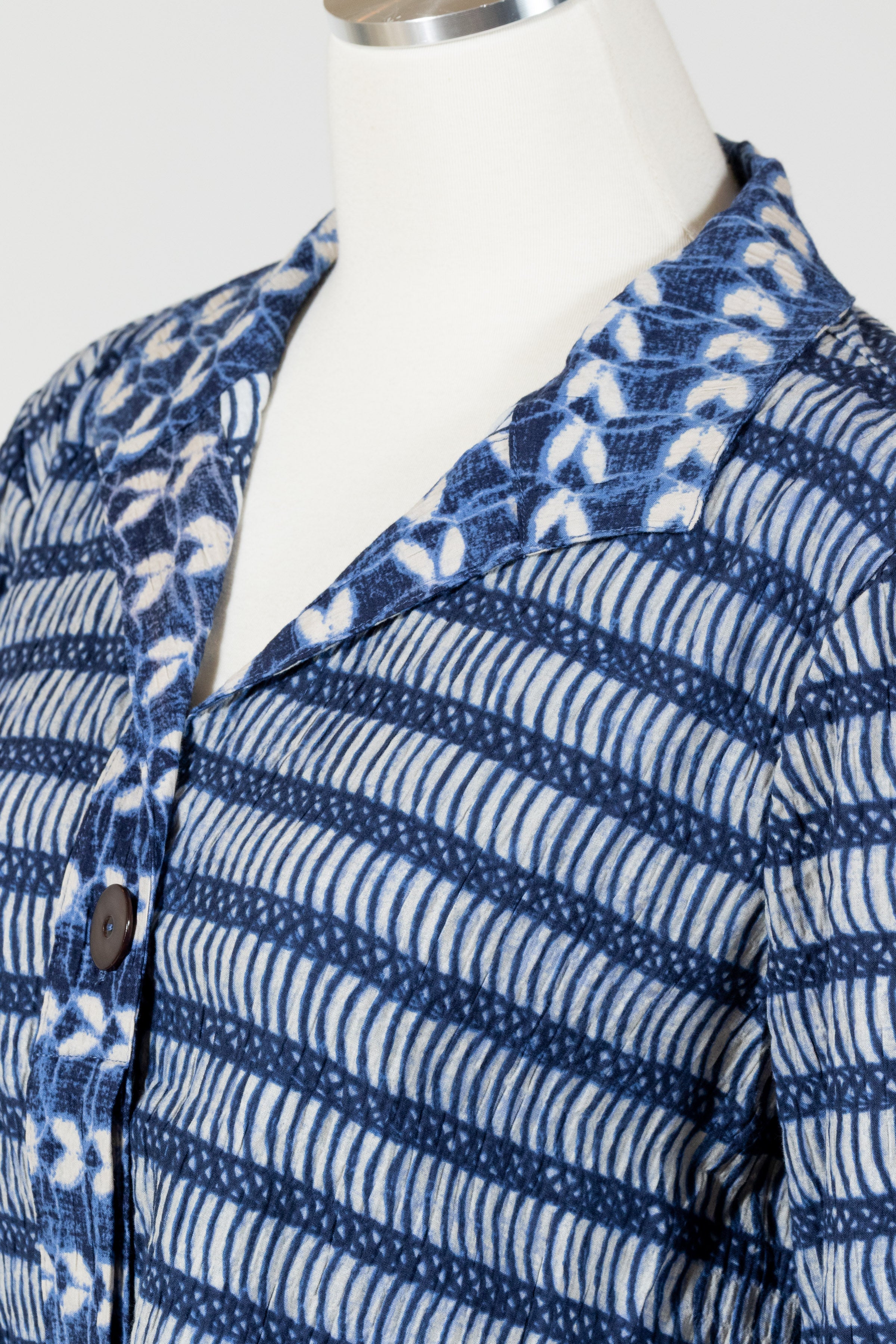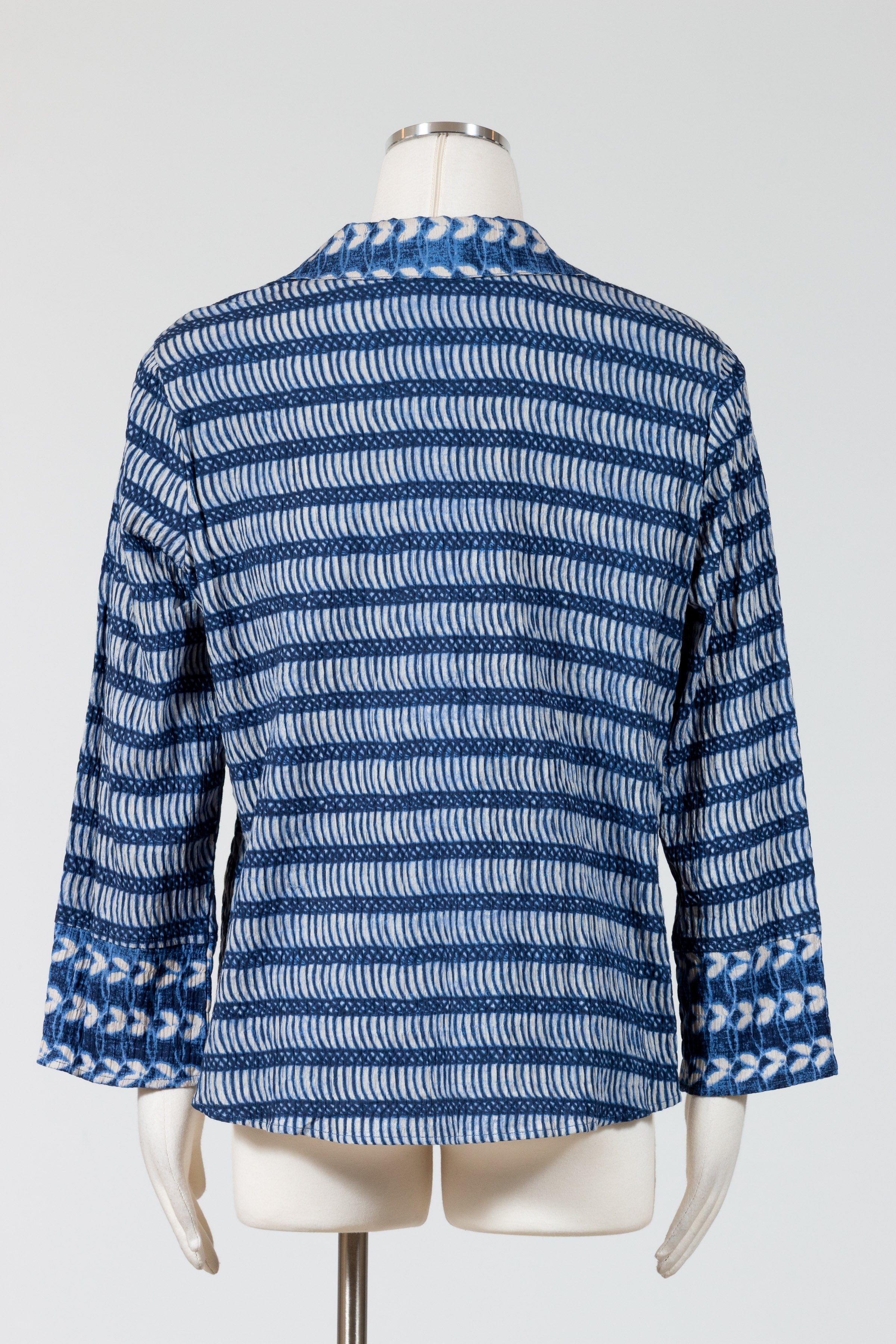 The Hidden Placket Mixed Shirt by Habitat redefines casual polish with its relaxed button-down fit and streamlined hidden button placket. Crafted in breathable crinkled cotton Batik print with a bit of stretch, the artful mix of patterns creates a fresh, one-of-a-kind look. Featuring three-quarter sleeves with slit cuffs (wear them folded or long), a curved hemline that falls over the hips, and clever invisible front pockets, this shirt blends effortless comfort with modern, versatile style. No pockets.