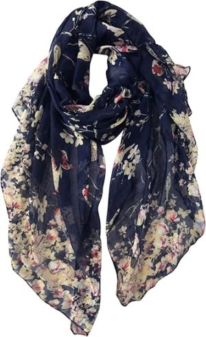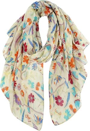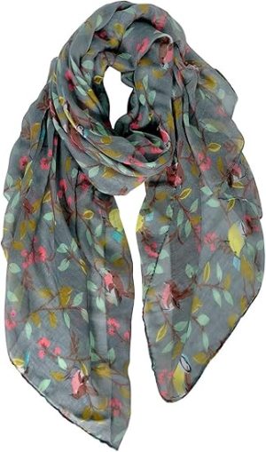Scarfs for Women Lightweight Floral Birds Print Cotton Scarves and Wraps for Summer Shawl