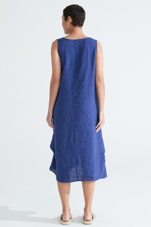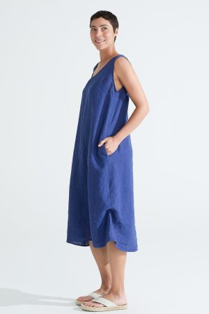 The Tie Dress by Cut Loose boasts a scoop neck and classic shift silhouette. Made from lightweight hanky linen, it’s ideal for the summer season. Its casual A-line shape falls gracefully over the knees to mid calf and includes convenient on seam side pockets. This wardrobe essential offers effortless style and long-lasting comfort. Don’t forget the inside ties to create side tucks for added flair and versatility!