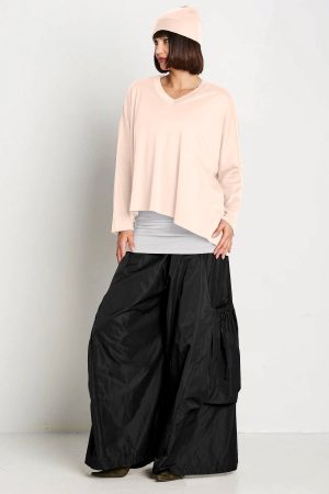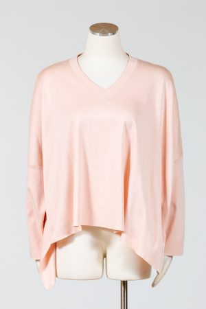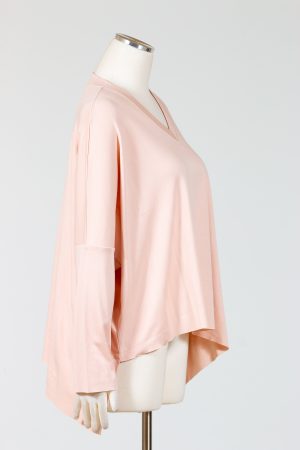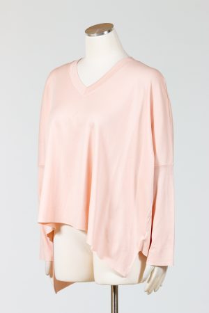PLANET by Lauren G’s V Neck Tee features a V neckline and a playful, short boxy design. Its loose fit is complemented by dropped long sleeves, and the turned up raw edges add a touch of quirky charm. With no pockets, this tee is perfect for a carefree, laid-back look.
