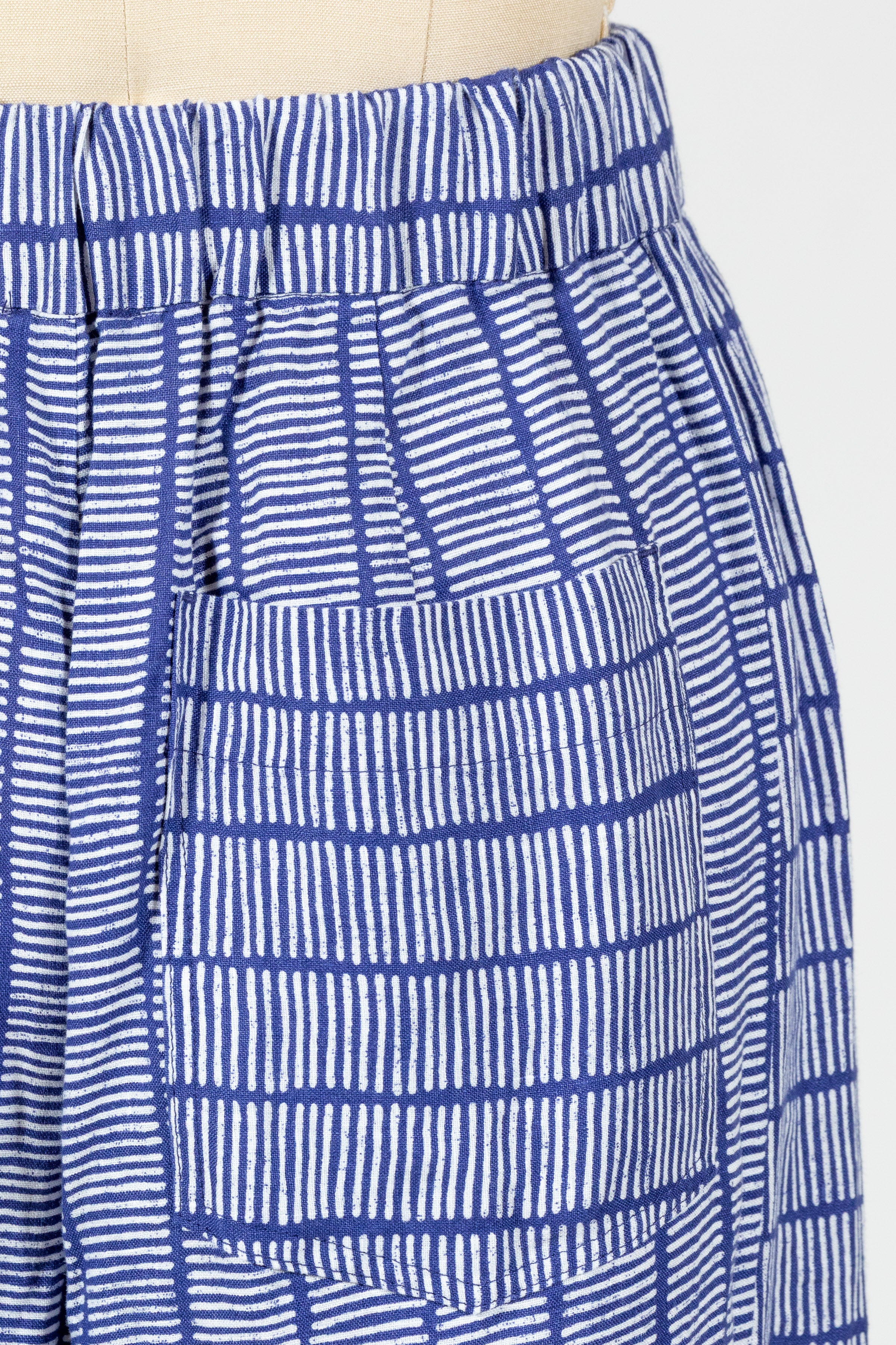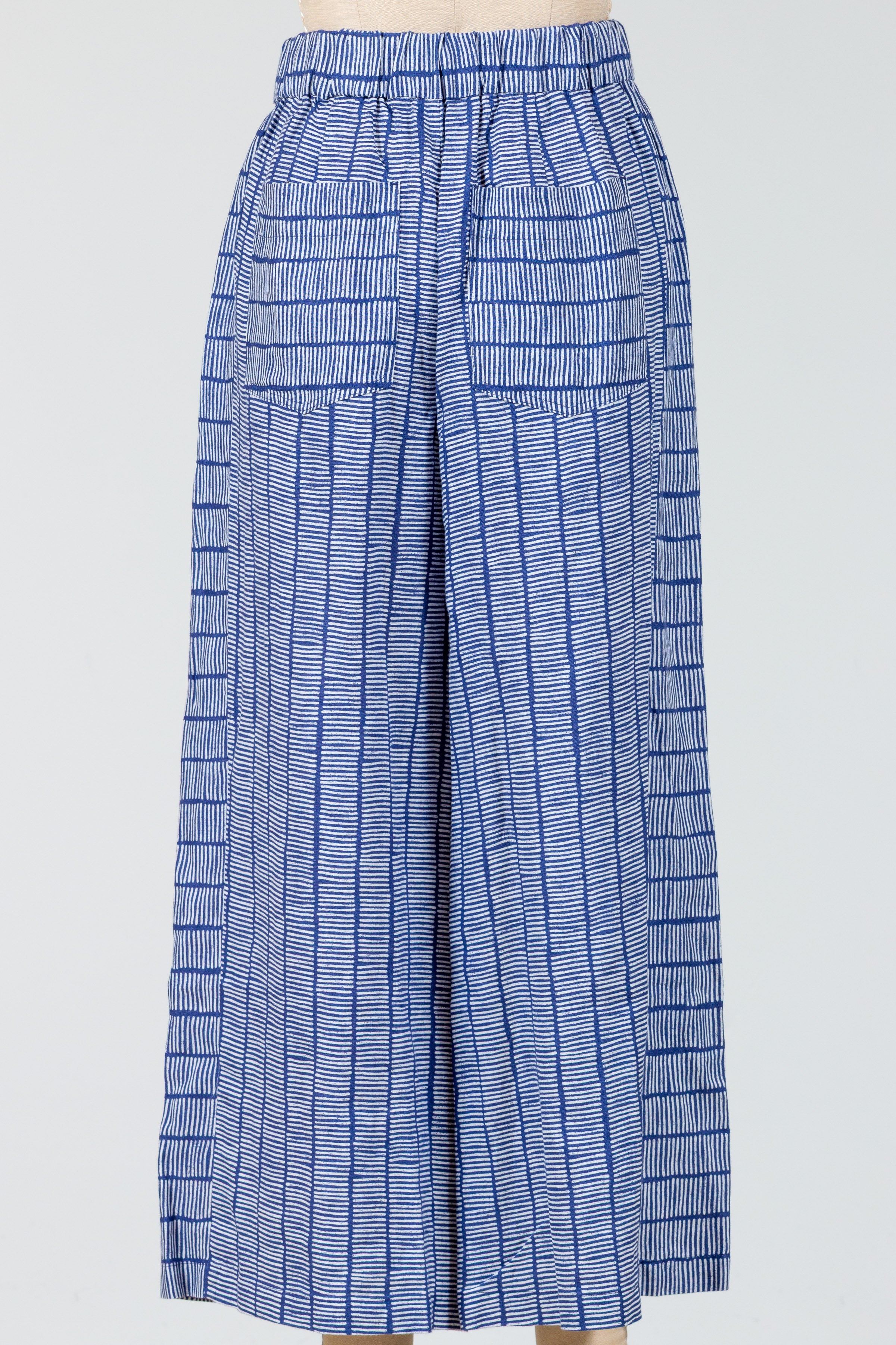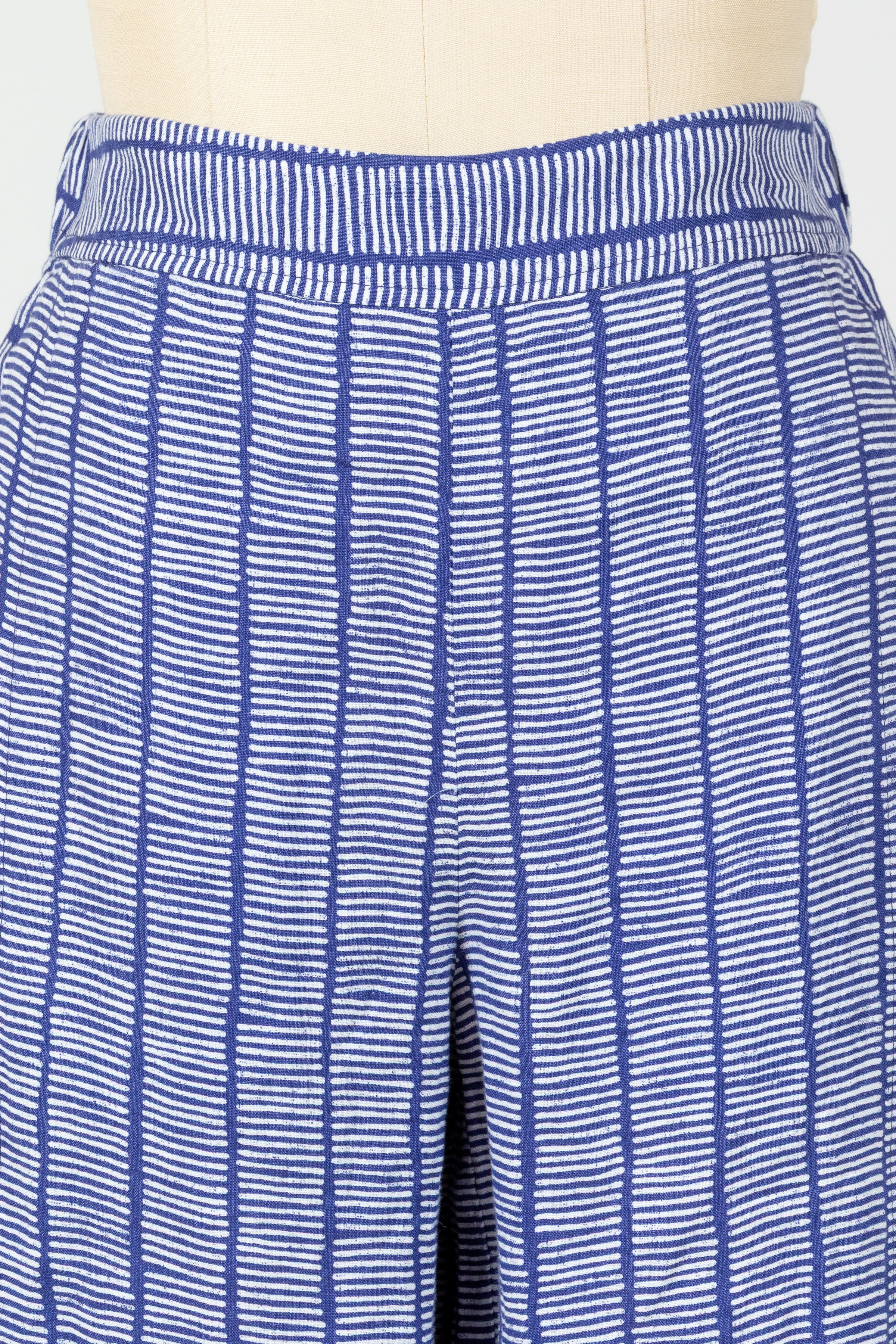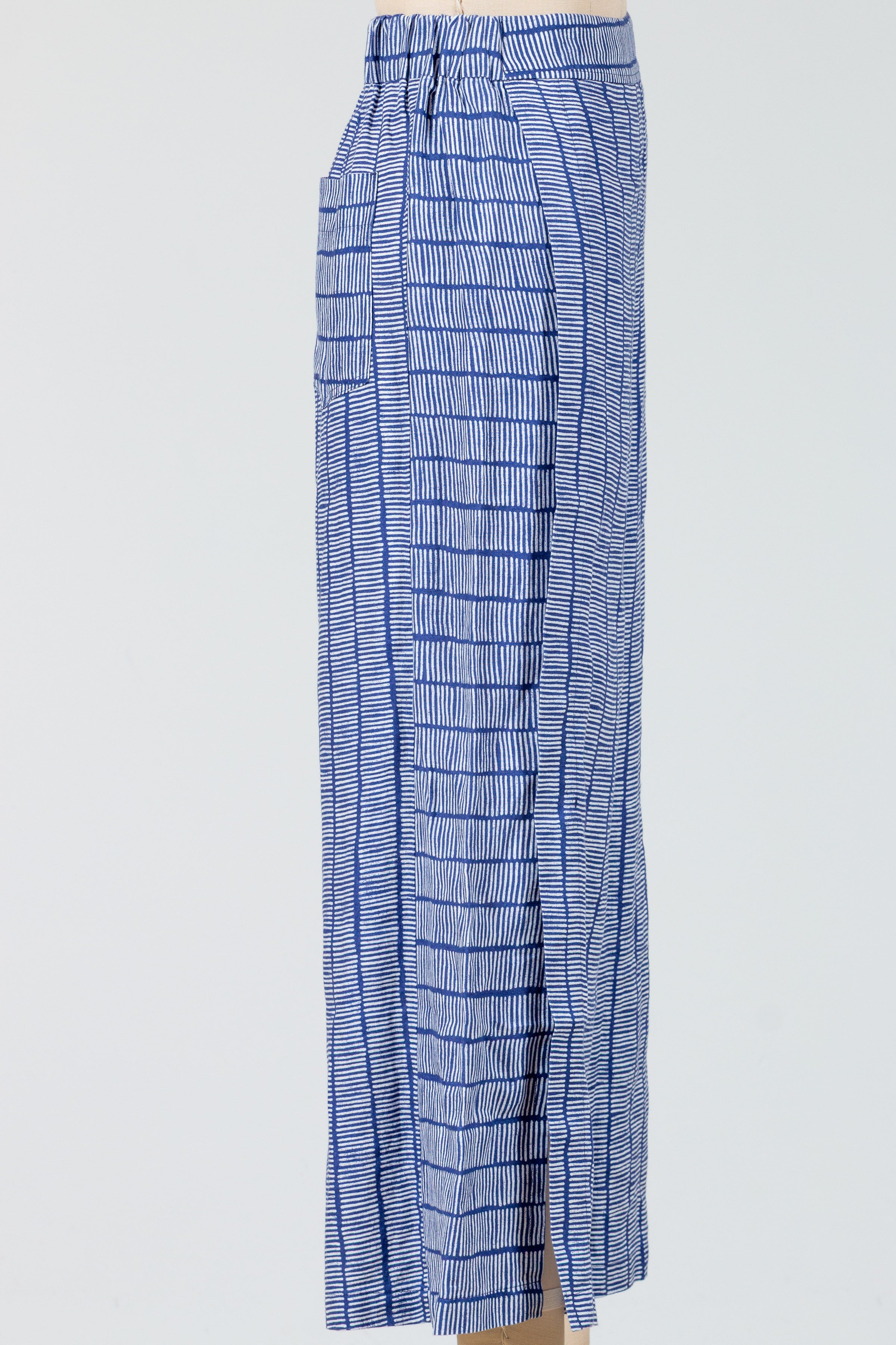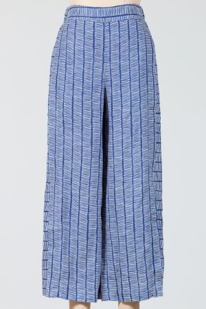 Introducing Olivia by Habitat’s Workhorse Stripe Pant – a stunning linen pant featuring a wide leg design that gracefully falls to the ankle, complete with a high slit for added elegance. Adorned with a captivating white bar pattern on blue base, this pant is one-of-a-kind. Enjoy a comfortable and effortless fit with a flat front waist and stretchy back. With two side pockets and two back patch pockets, you’ll have plenty of storage. Wrapping it all up is a long side slit for a touch of flair.